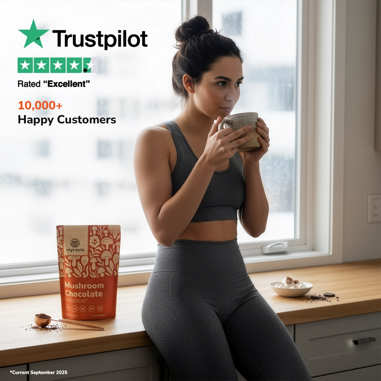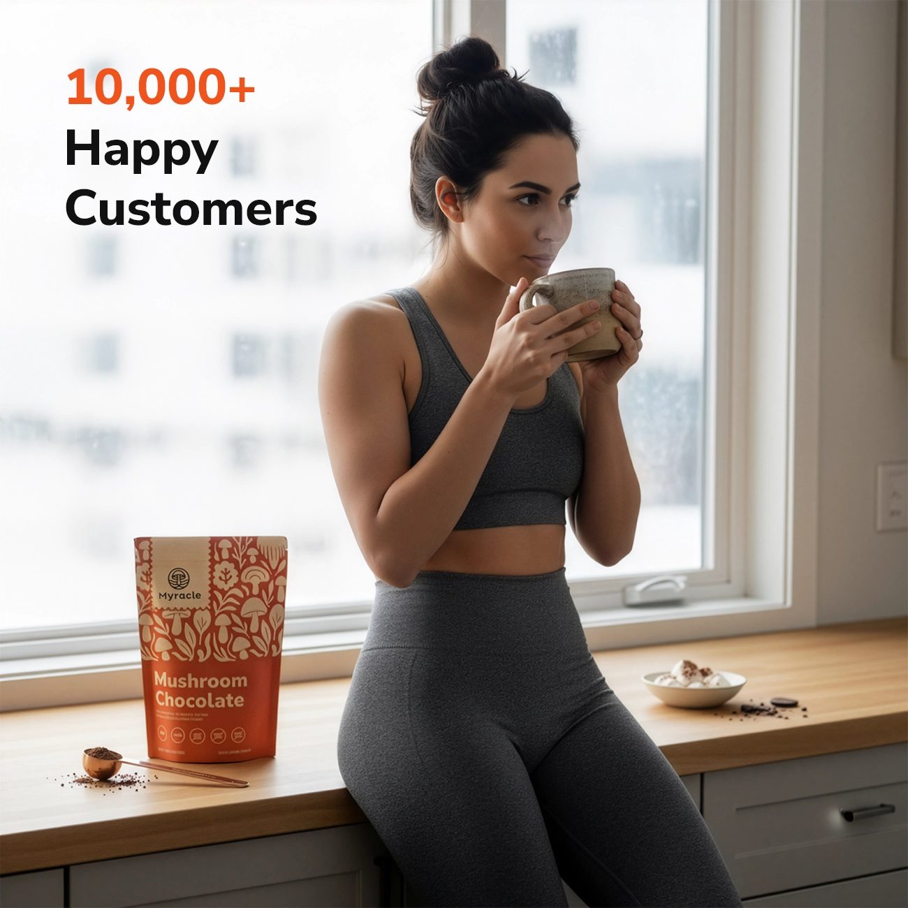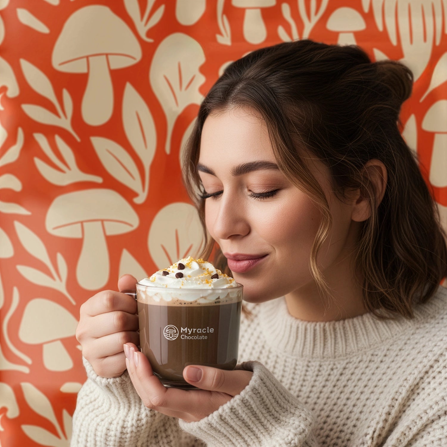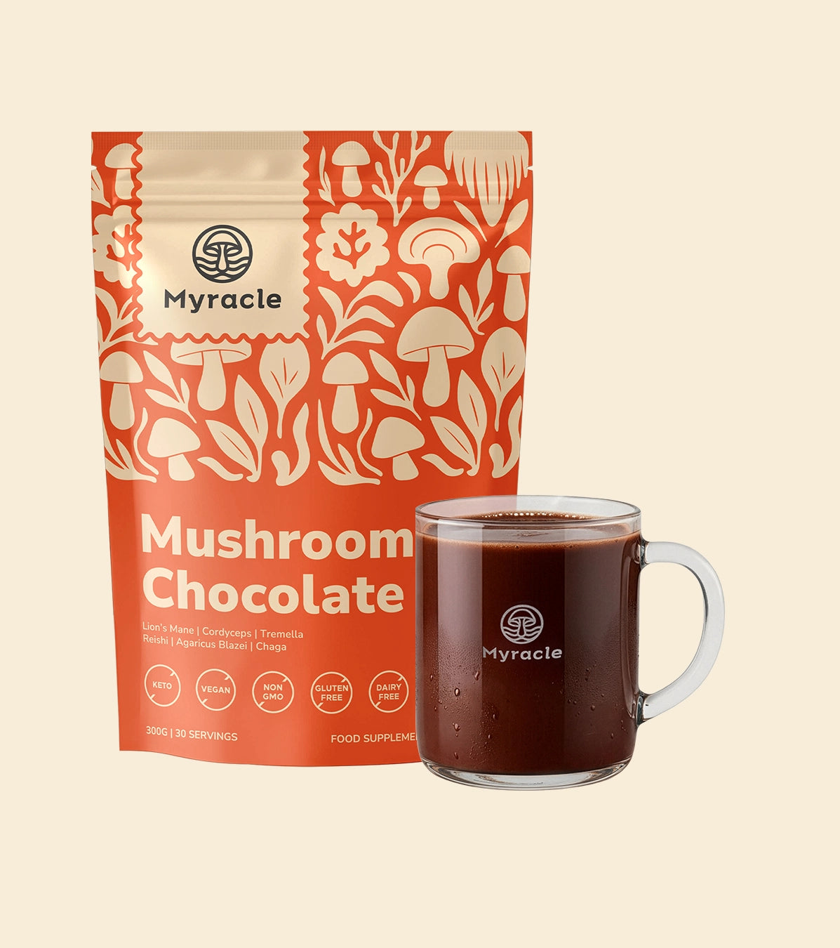 Myracle tastes like a rich, creamy hot chocolate with a hint of coconut. Smooth and velvety from premium, unsweetened cacao, it’s naturally chocolatey, satisfying, and comforting — with no added sugar and absolutely no mushroom taste.
